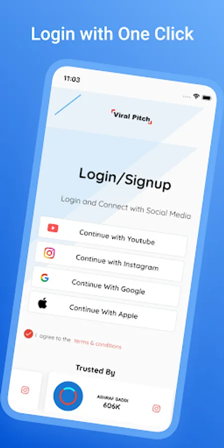 Step 2: Sign Up with your Instagram, Facebook, YouTube or Gmail ID