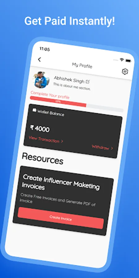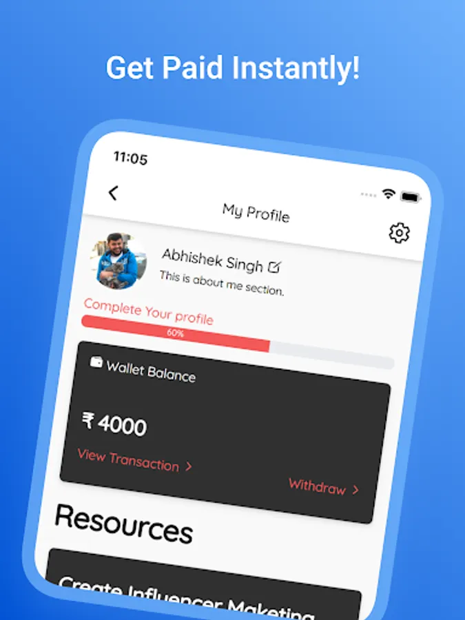 3.Real Time notifications: Get notified about approvals, payments and campaign updates