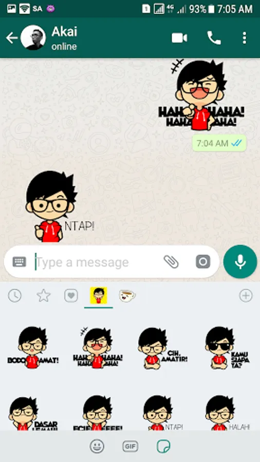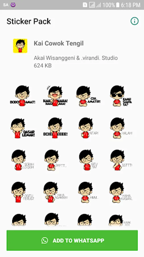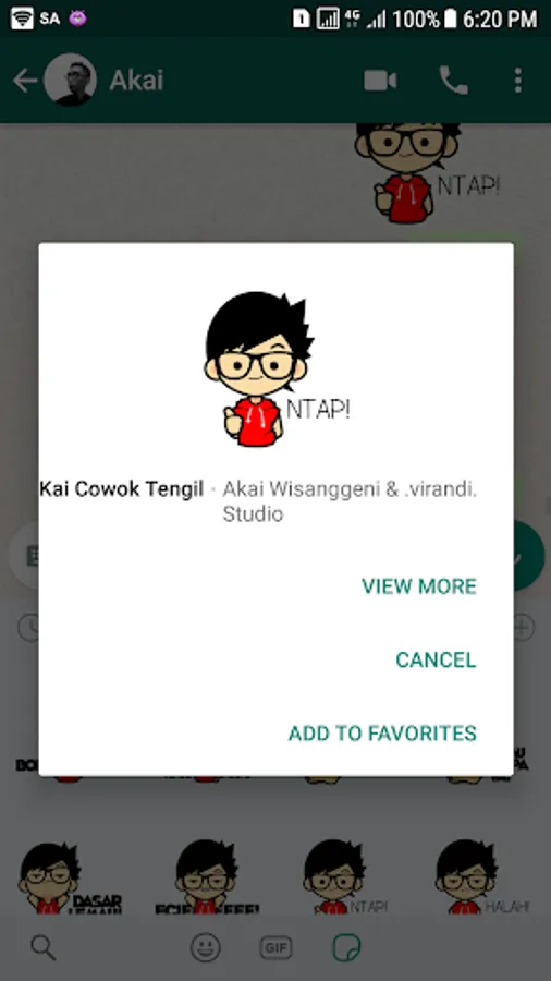 Kai adalah cowok tengil yang suka ngusilin temen-temennya. Tipikal tukang ngopi di kafe kekinian dan makhluk malem yang tidurnya pagi. Prinsip hidupnya "mandi hanya untuk orang yang merasa dirinya kotor". Mukanya ngeselin, bawaannya bikin pengen nimpuk pake sandal kalo ngobrol sama dia. Gih donlot buat stikermu, biar chat-mu tambah ngeselin!