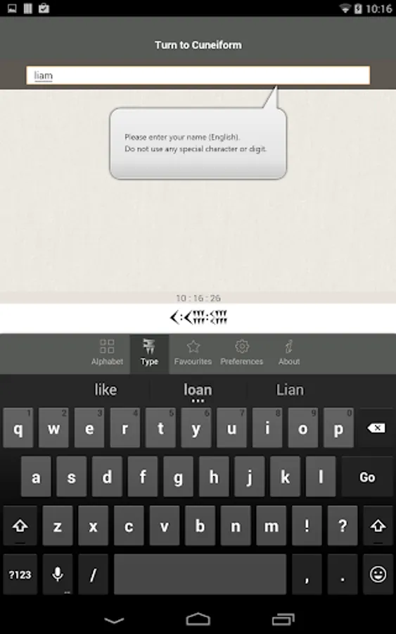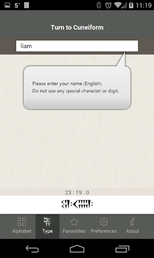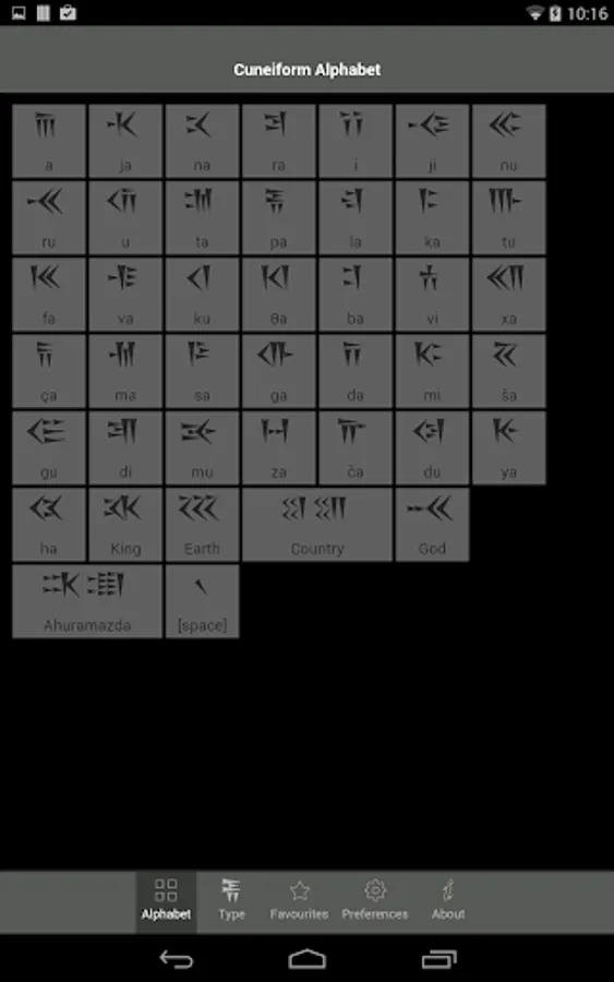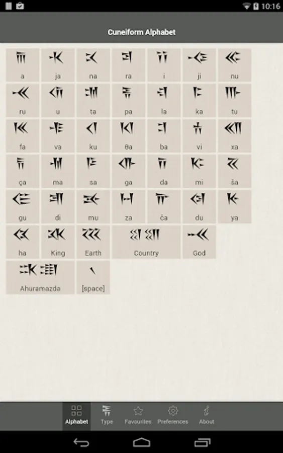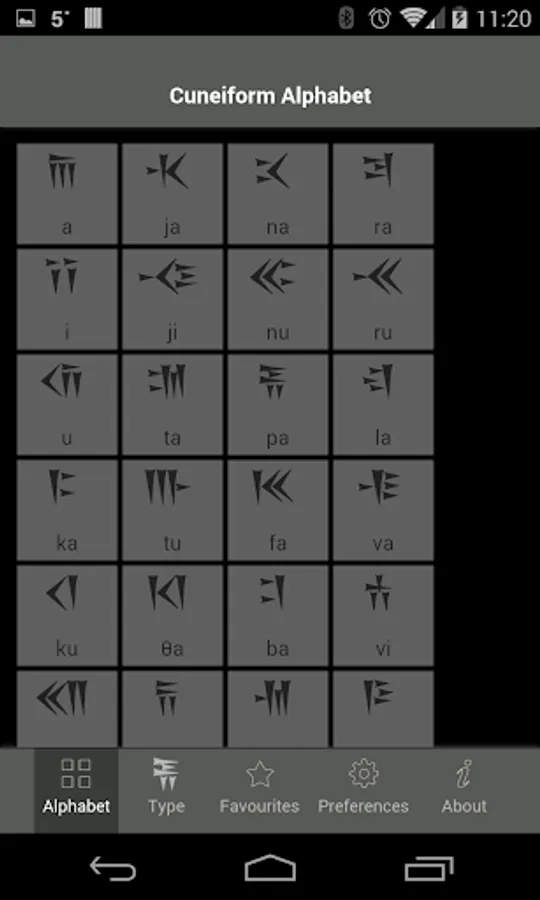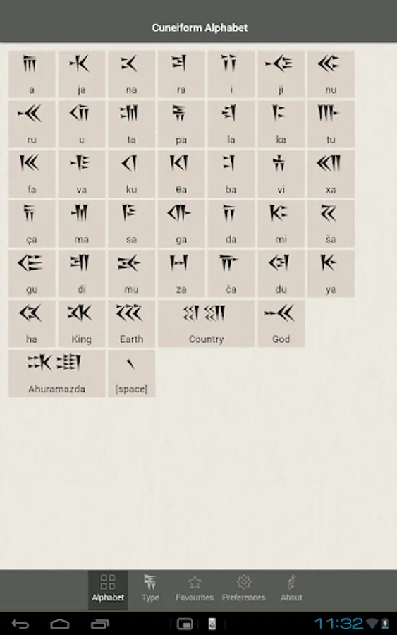 This app turns your name to Old Persian Cuneiform script. Also you can learn Old Persian script alphabet with pronunciation, and enjoying Cuneiform clock, Night mode, sharing and ...