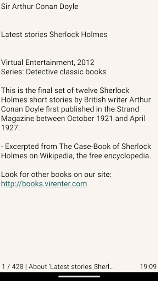 This book is the final set of twelve Sherlock Holmes short stories by British writer Arthur Conan Doyle first published in the Strand Magazine between October 1921 and April 1927.