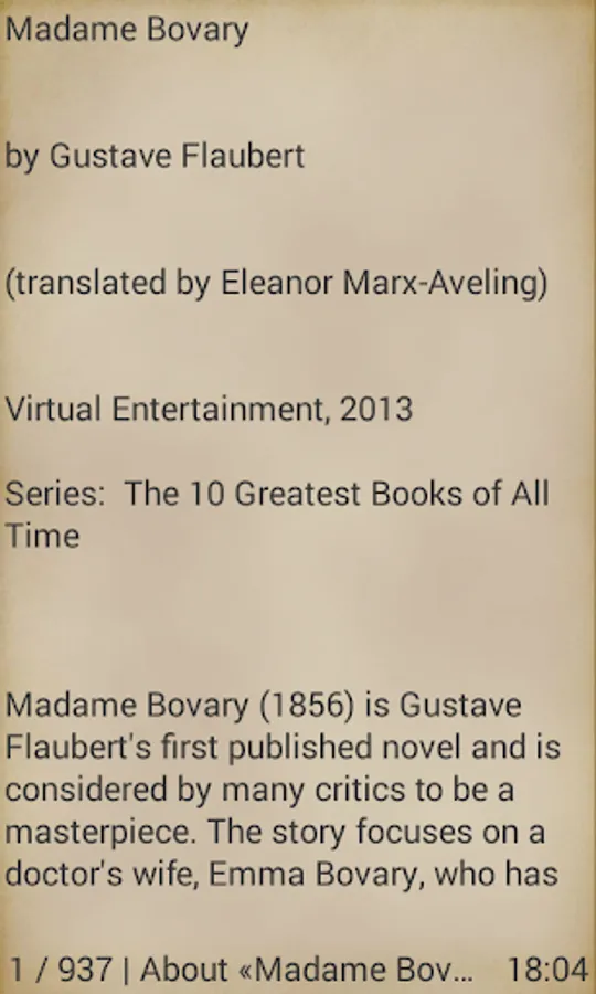 The story focuses on a doctor's wife, Emma Bovary, who has adulterous affairs and lives beyond her means in order to escape the banalities and emptiness of provincial life. Though the basic plot is rather simple, even archetypal, the novel's true art lies in its details and hidden patterns. Flaubert was a notorious perfectionist and claimed always to be searching for le mot juste ("the right word").