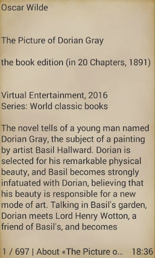 The novel tells of a young man named Dorian Gray, the subject of a painting by artist Basil Hallward. Dorian is selected for his remarkable physical beauty, and Basil becomes strongly infatuated with Dorian, believing that his beauty is responsible for a new mode of art. Talking in Basil's garden, Dorian meets Lord Henry Wotton, a friend of Basil's, and becomes enthralled by Lord Henry's world view. Espousing a new kind of hedonism, Lord Henry suggests that the only thing worth pursuing in life is beauty, and the fulfillment of the senses. Realising that one day his beauty will fade, Dorian cries out, wishing that the portrait Basil has painted of him would age rather than himself. Dorian's wish is fulfilled, subsequently plunging him into a sequence of debauched acts. The portrait serves as a reminder of the effect each act has upon his soul, each sin being displayed as a new sign of aging on the portrait.