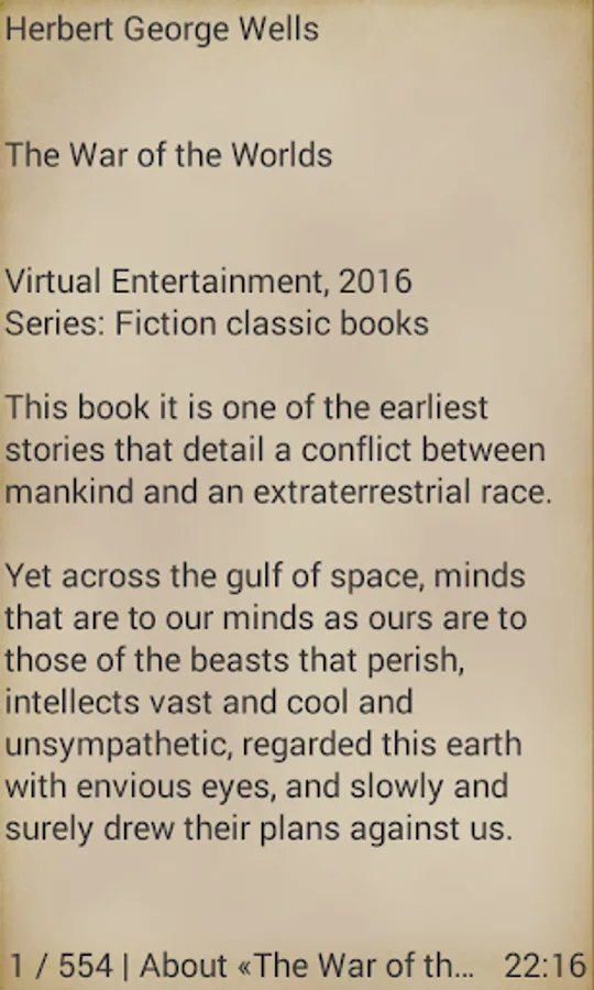 This book is one of the earliest stories that detail a conflict between mankind and an extraterrestrial race.