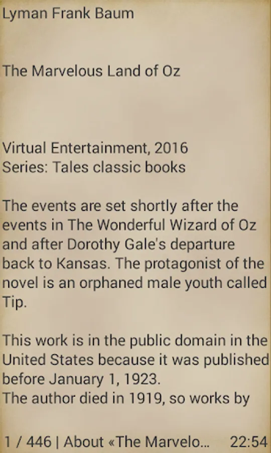 The events are set shortly after the events in The Wonderful Wizard of Oz and after Dorothy Gale's departure back to Kansas. The protagonist of the novel is an orphaned male youth called Tip.