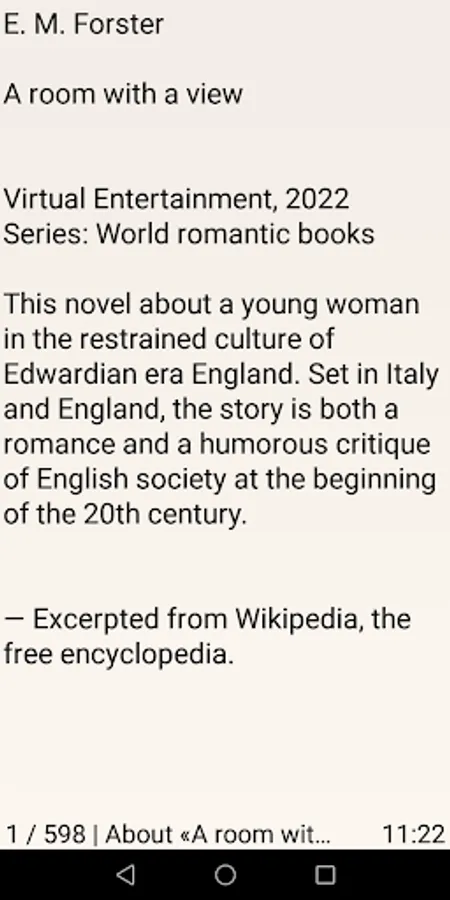 This novel about a young woman in the restrained culture of Edwardian era England. Set in Italy and England, the story is both a romance and a humorous critique of English society at the beginning of the 20th century.