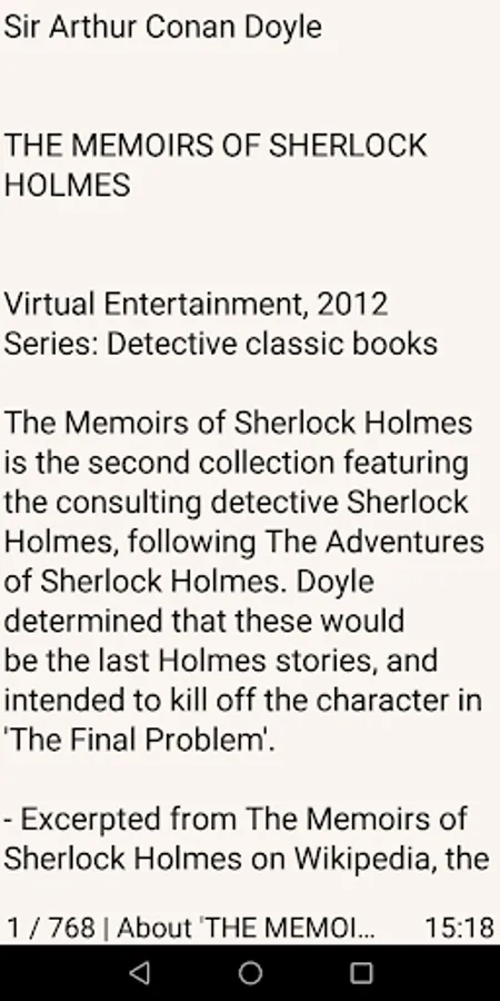 The Memoirs of Sherlock Holmes is the second collection featuring the consulting detective Sherlock Holmes, following The Adventures of Sherlock Holmes. Doyle determined that these would be the last Holmes stories, and intended to kill off the character in 'The Final Problem'.