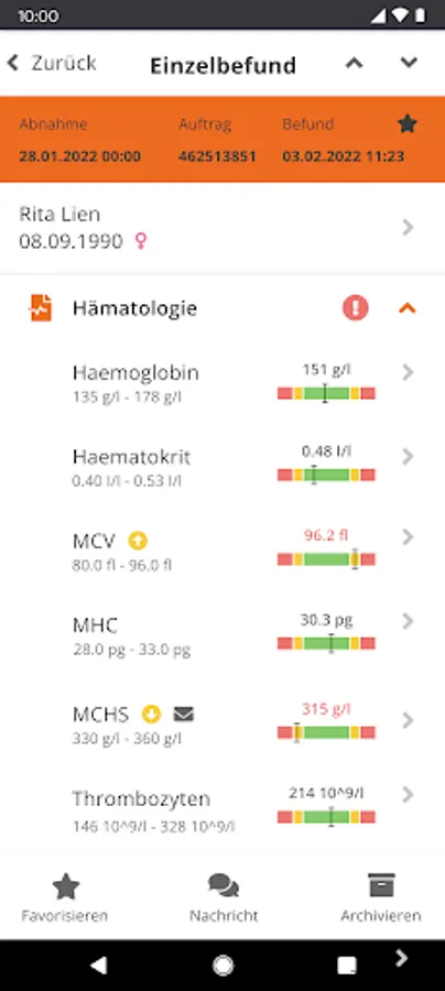 Get to look at laboratory Brunner to your lab results on your mobile device. Whether you are to make new, pathological or urgent findings, thanks laboratory Brunner and built-in support for push notifications you are always up to date. Use the Bookmarks check with important findings immediately of any changes.
