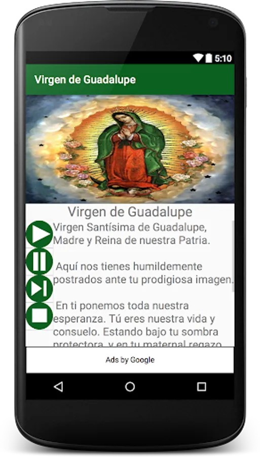 The prayer of the Virgin of Guadalupe on your smartphone with internet audio without'll take you anywhere without the need for Internet is ideal for seniors, children or just to escuharla
