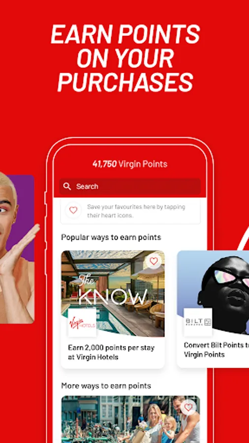 · Earn your first points by shopping directly with your favorite brands via Virgin Red