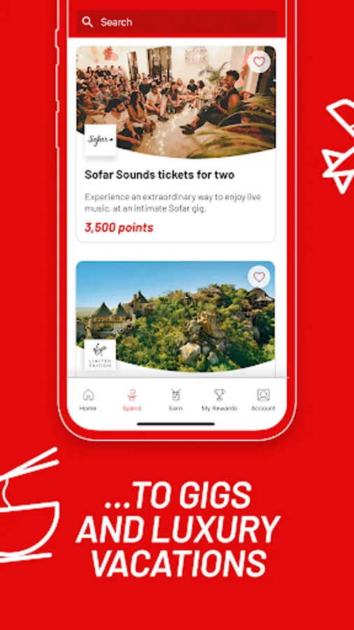 Here comes the fun part: the spending. Virgin Red members can use their points for everything from a pair of gig tickets to exclusive stays in dreamy locations.