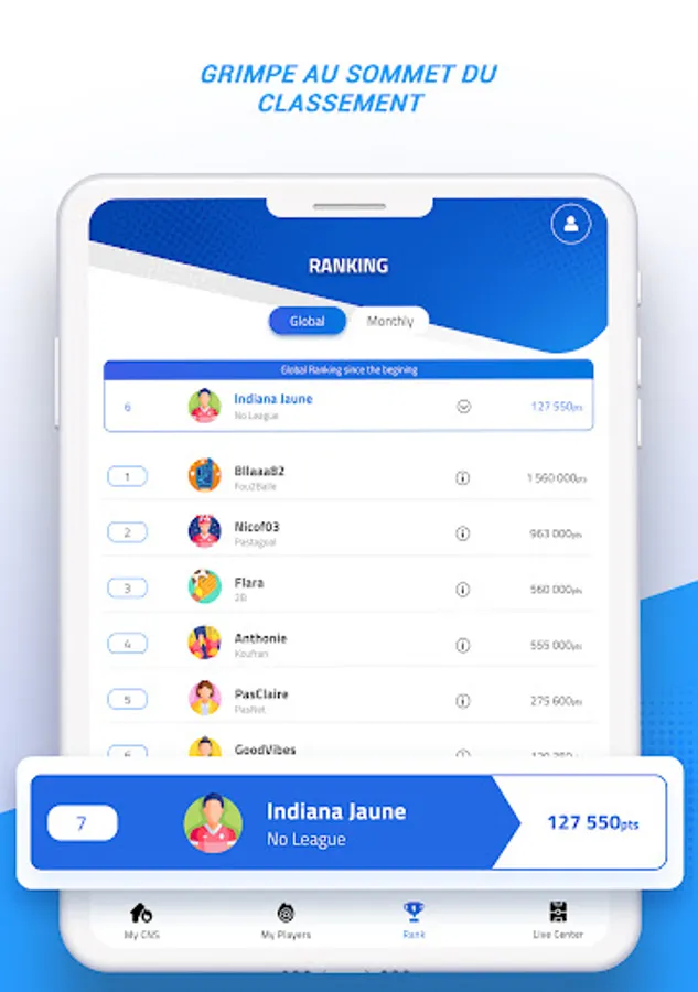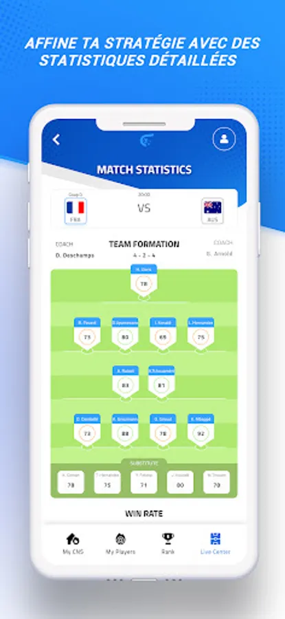 It's up to you to analyze the players' statistics to make the right choice at the right time and reach the top of the ranking!