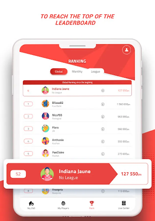 It's up to you to analyze the players' statistics to make the right choice at the right time and reach the top of the ranking!