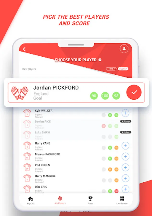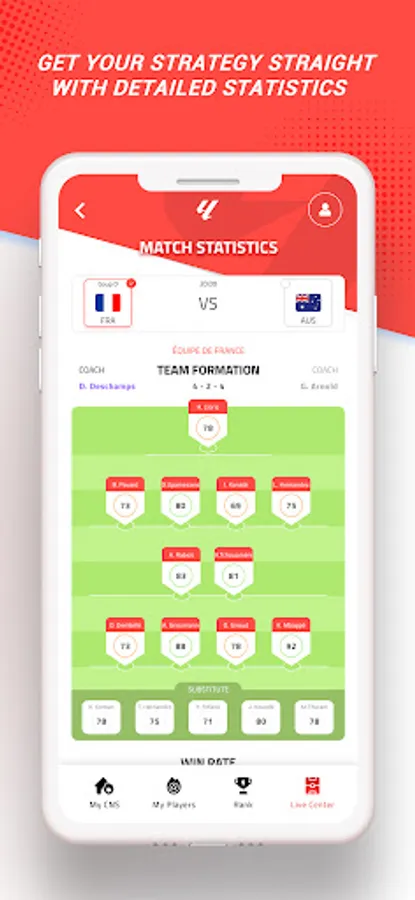- Access all the information and statistics of the matches before and during the game: line-up, past scores, and latest news to help you make the best choice and pick the right player