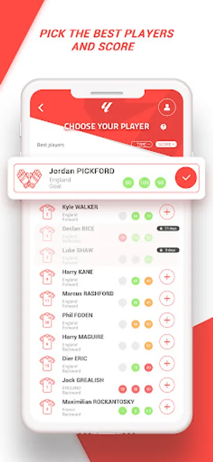 You can plan your future selections or do it day by day. To help you adapt your strategy, you can also access your selection history, the scores of previous matches and analyze how your score is calculated.