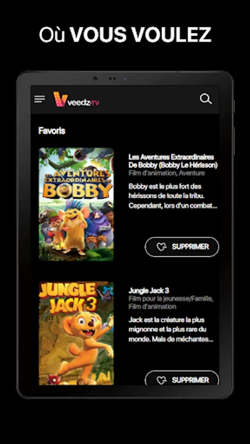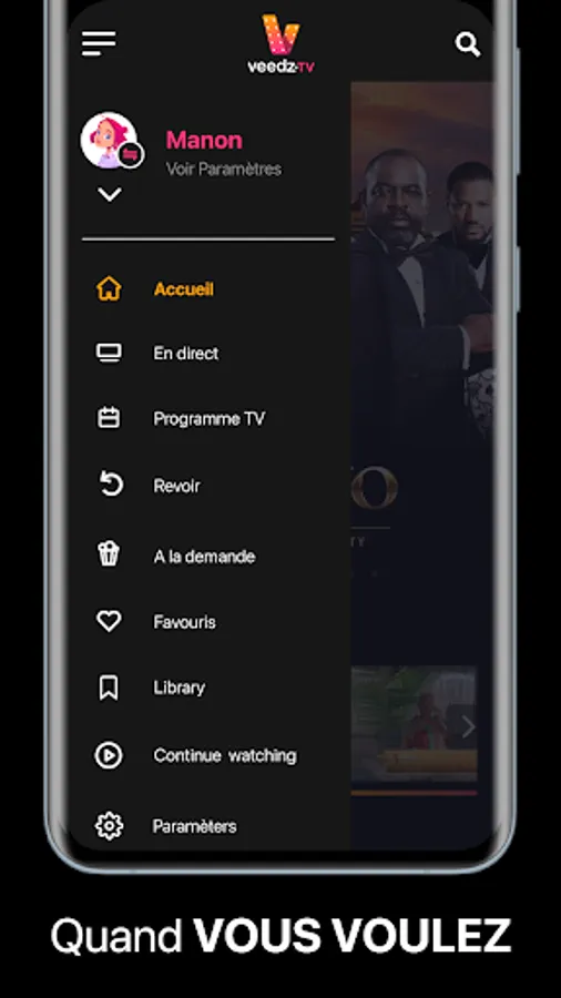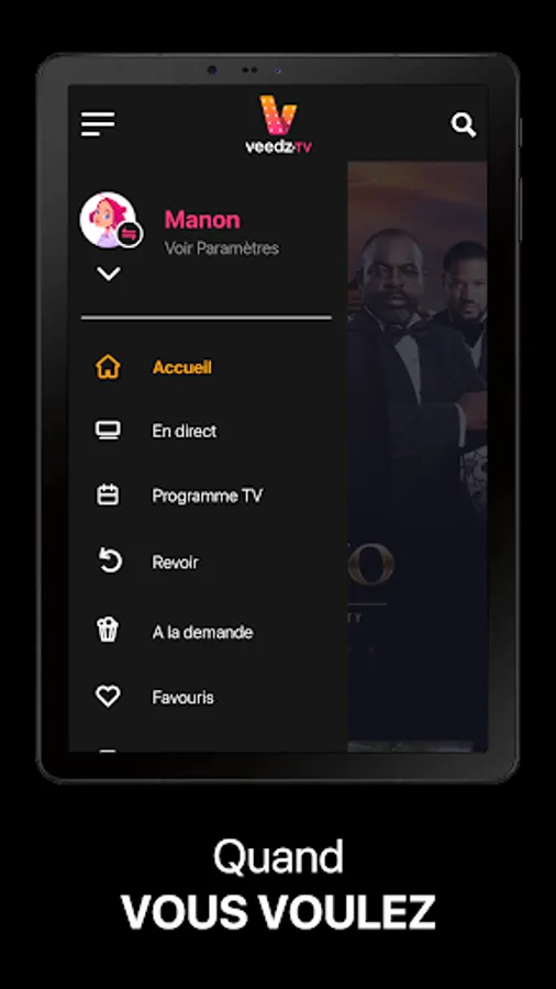 By opting for Veedz.TV, you are choosing a complete application on which you can access many live TV channels. Replay and VOD are also on the program with films and series in streaming.