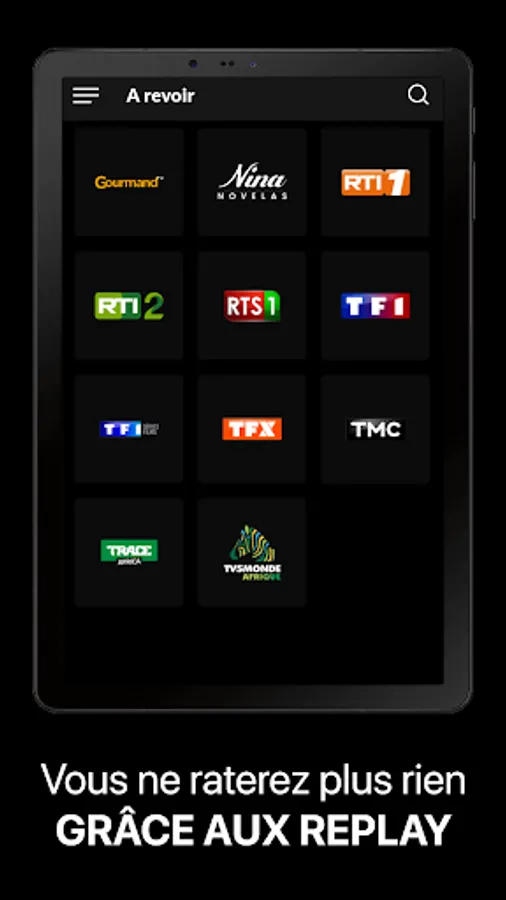 ✔️ Thanks to its powerful player, take advantage of "classic" controls such as play, pause, rewind, fast forward and replay, but also other options. You will not only be able to access replay channels, but also adjust the audio settings and switch to full screen mode. Keep full control over the viewing.