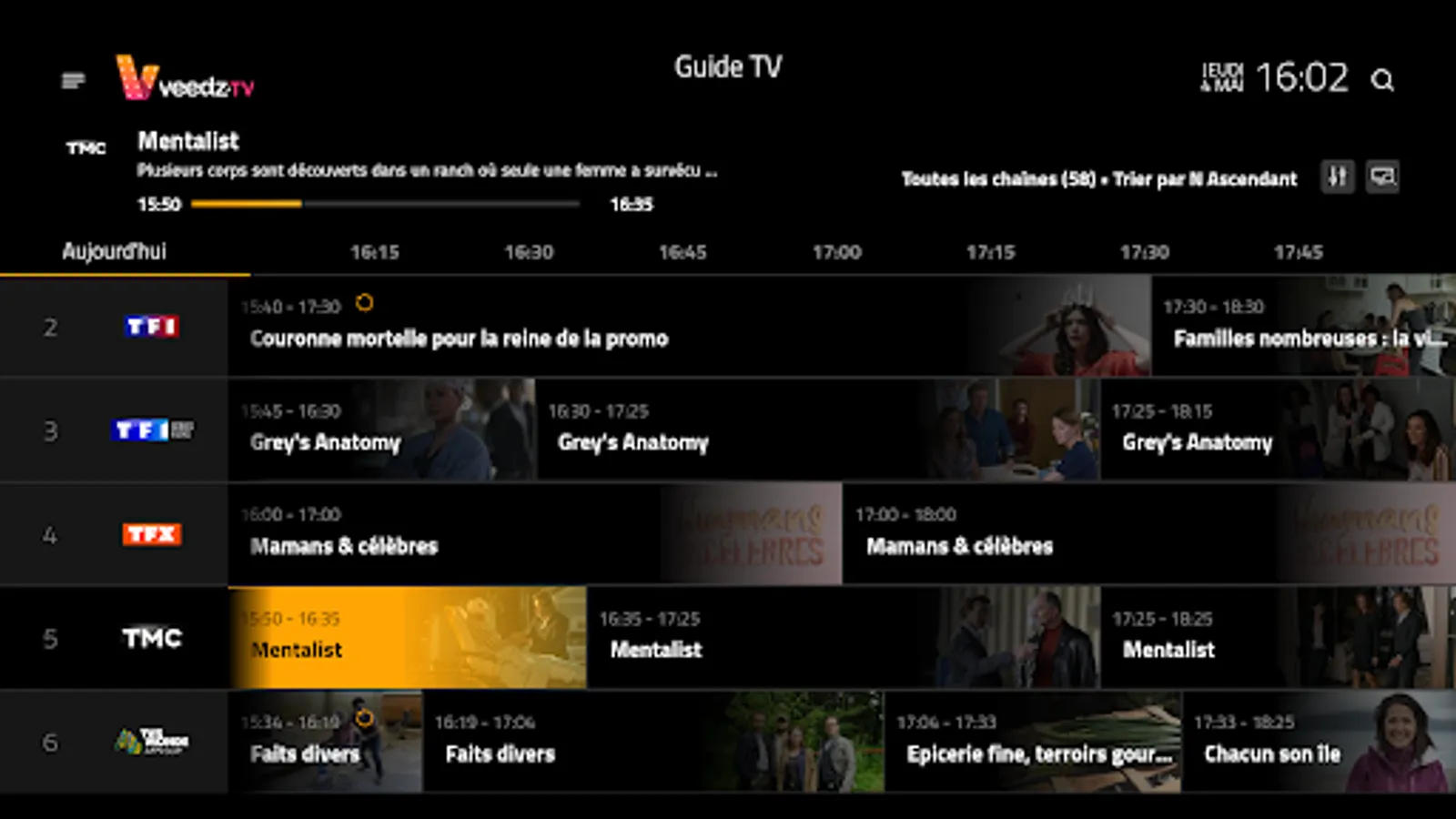 Shows currently airing are highlighted, log in to discover them. Find information about each channel and the content (category, duration, themes, etc.). Various genres are promoted via dedicated content rails to satisfy all viewers.