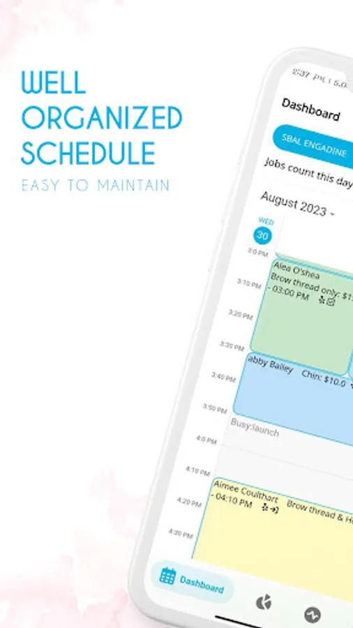 4. Staff Availability and Business Hours: Our app's calendar simplifies scheduling by displaying staff schedules, customer appointments, and staff availability. With a quick glance, you can efficiently manage appointments, avoid conflicts, and ensure smooth operations in your business.