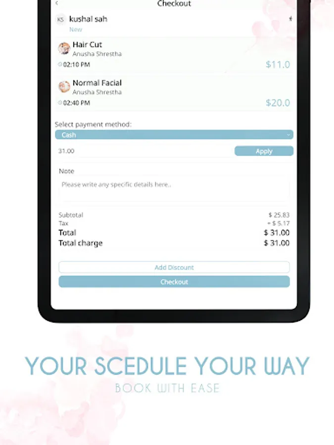 2. Appointment Checkout: Effortlessly check out appointments once the services are completed. Our app allows you to manage payments, update service details, and provide a smooth and efficient experience for your customers.