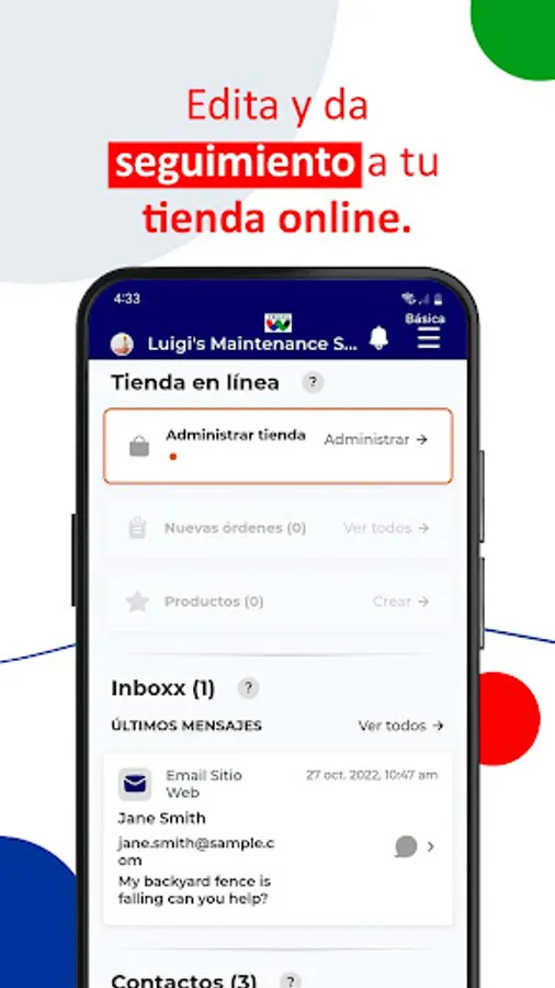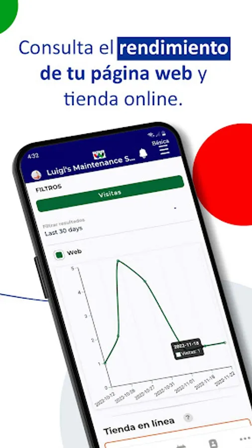 Check the results of your online presence from your mobile. Know the number of visits to your web page, answer the messages of your prospective clients immediately and manage your time and tasks in the best way.