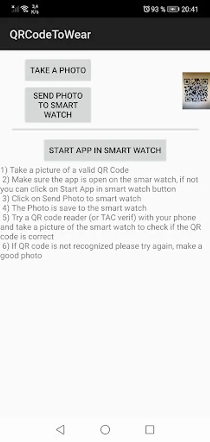 5) Try a QR code reader (or TAC verif) with your phone and take a picture of the smart watch to check if the QR code is correct