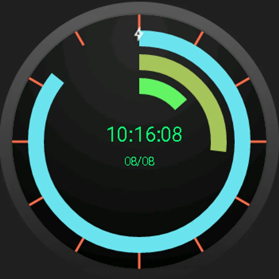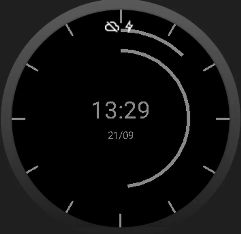 With this WatchFace you have the date and hours, and you can make it unique. Customise your WatchFace with the Android Wear application on your smartphone.