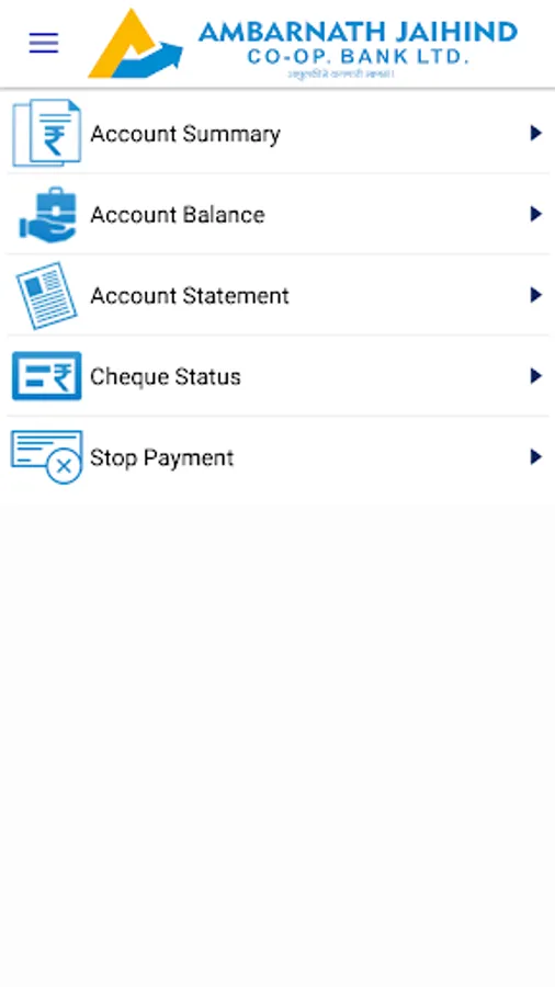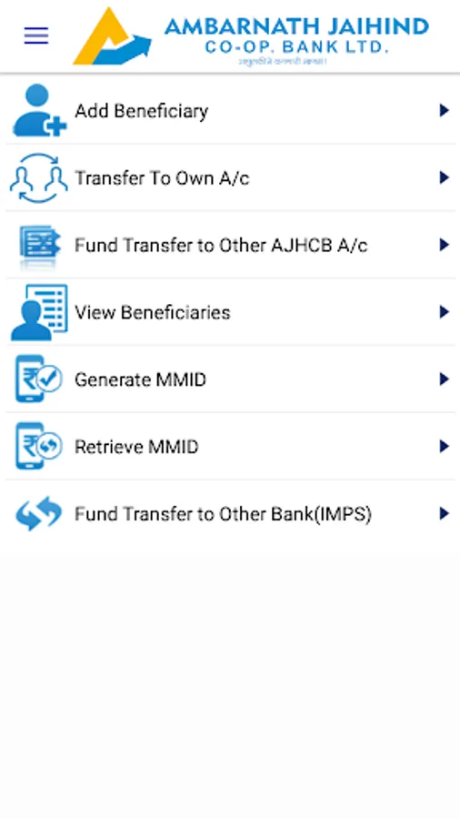 In AMBAR APP we are giving facilities like Account Summary, Transaction- Own A/c Fund transfer AJHC BANK , Other A/c Fund transfer AJHC Bank, IMPS fund transfer (Other Bank), Cheque Book Request, Email Statement Request, Cheque Status