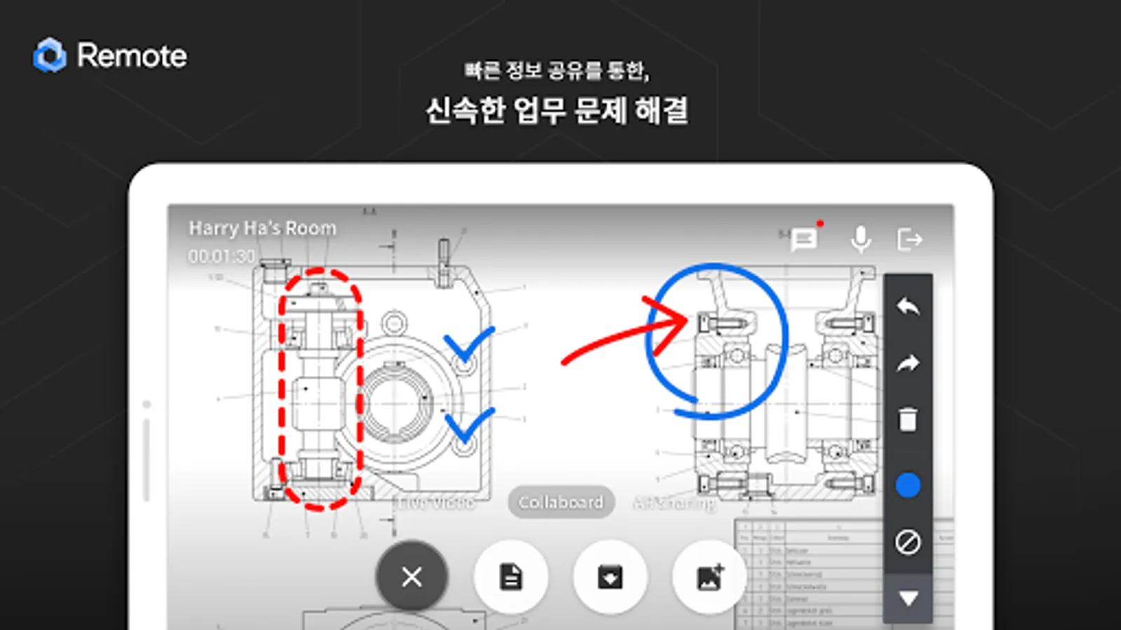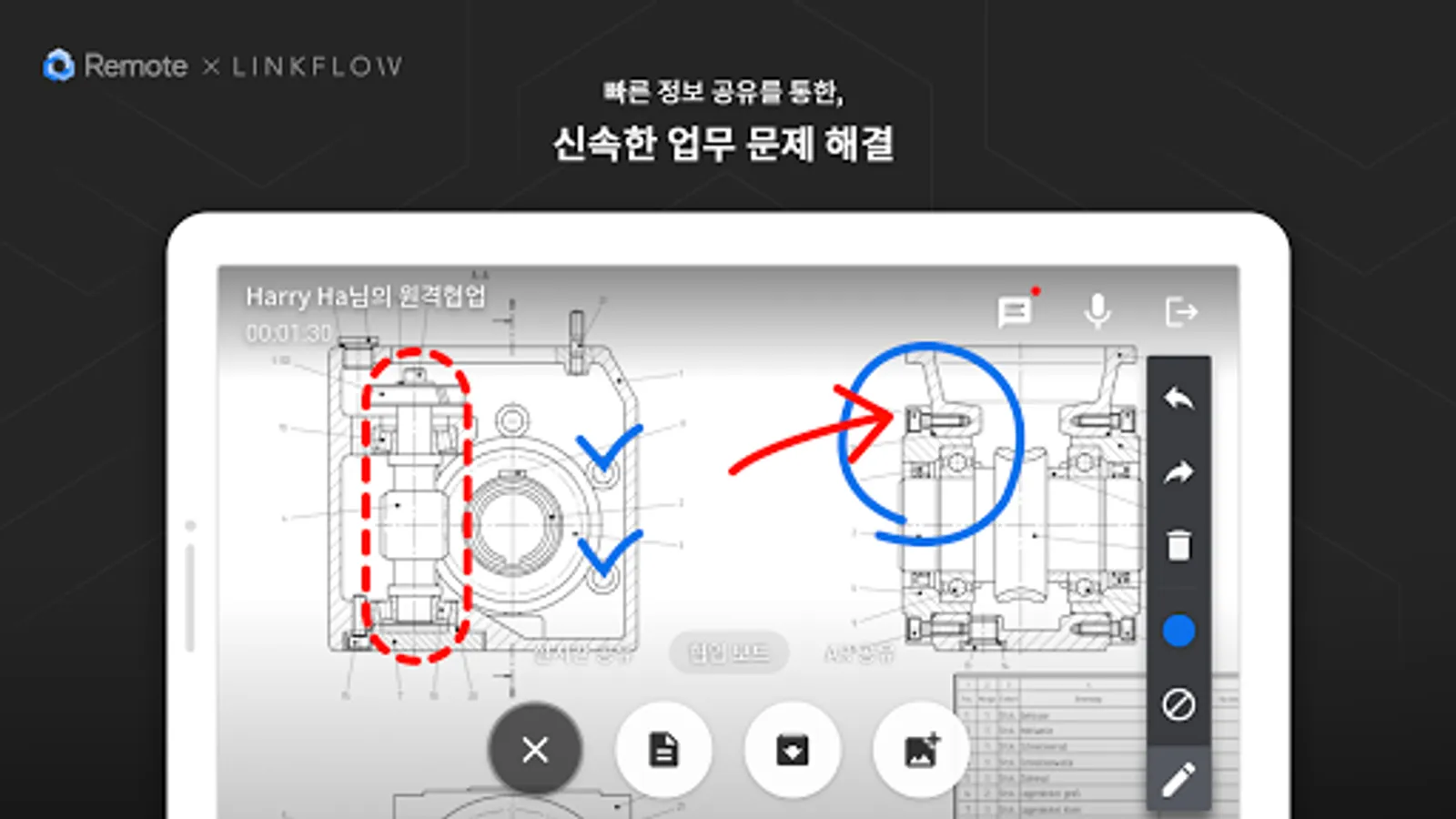 - The experts’ know-hows can be shown on the actual equipment via pointing and drawing features.