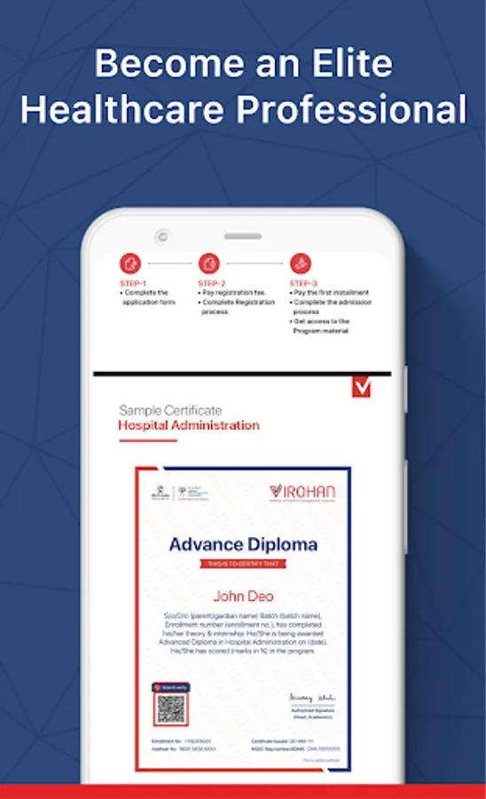 Connect with Virohan’s Career counselors through the App and book a FREE session to discuss how you can make a successful career in the healthcare industry. myCareer App also serves as a self-guided platform to register & admit in a course of your choice. You can access free course study material on the myCareer app for lifetime.