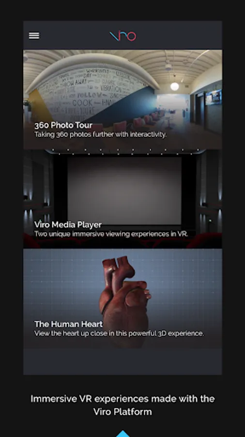 Download the free Viro Media app and check out the immersive Virtual Reality (VR) experiences built on the Viro Platform.