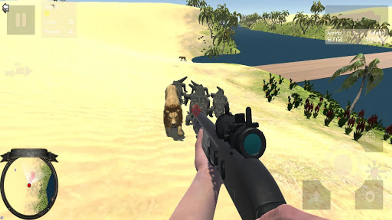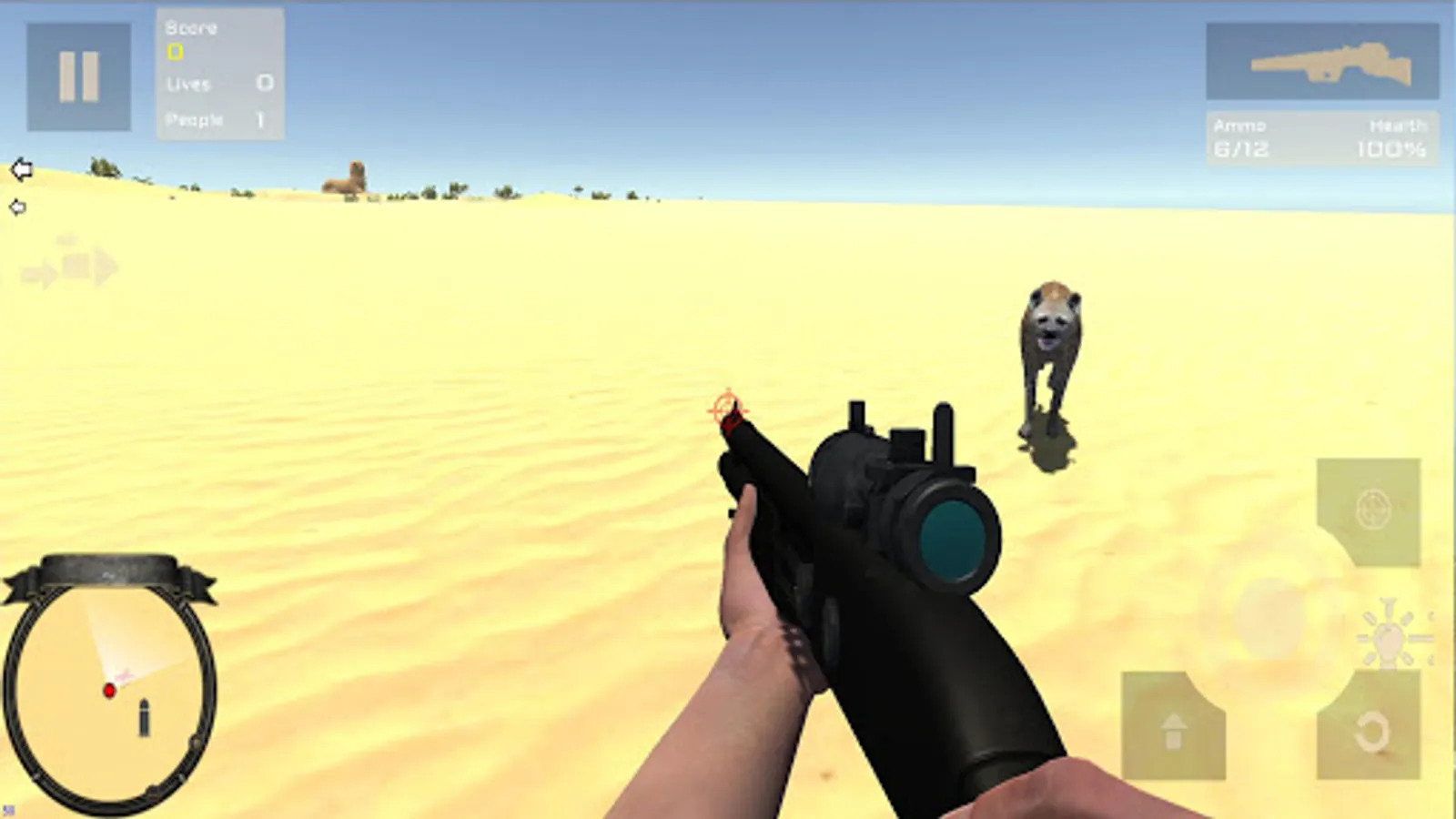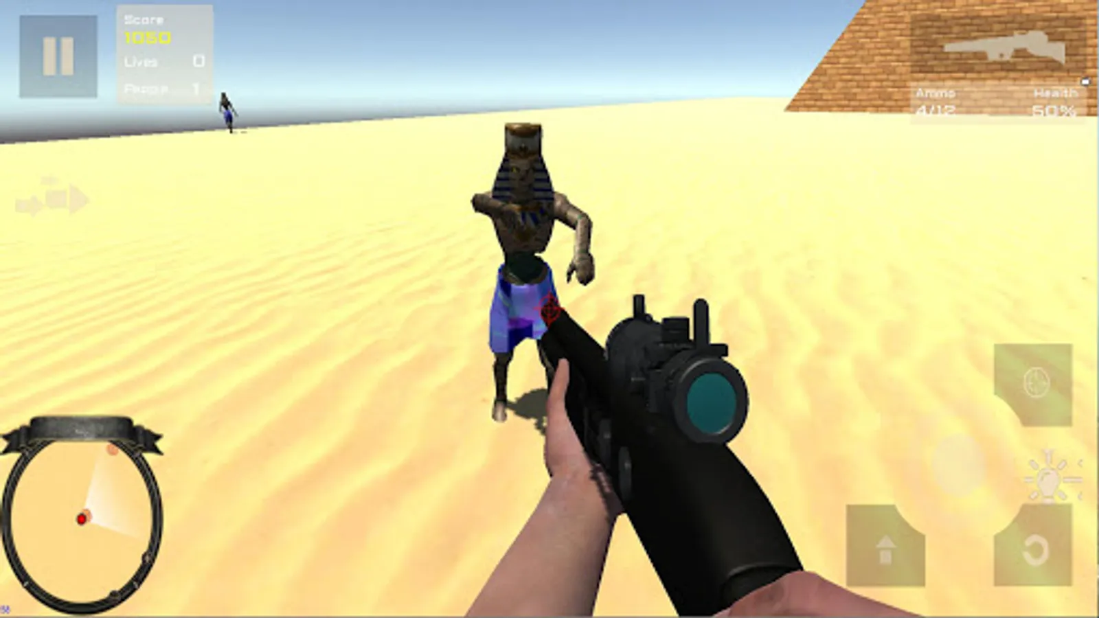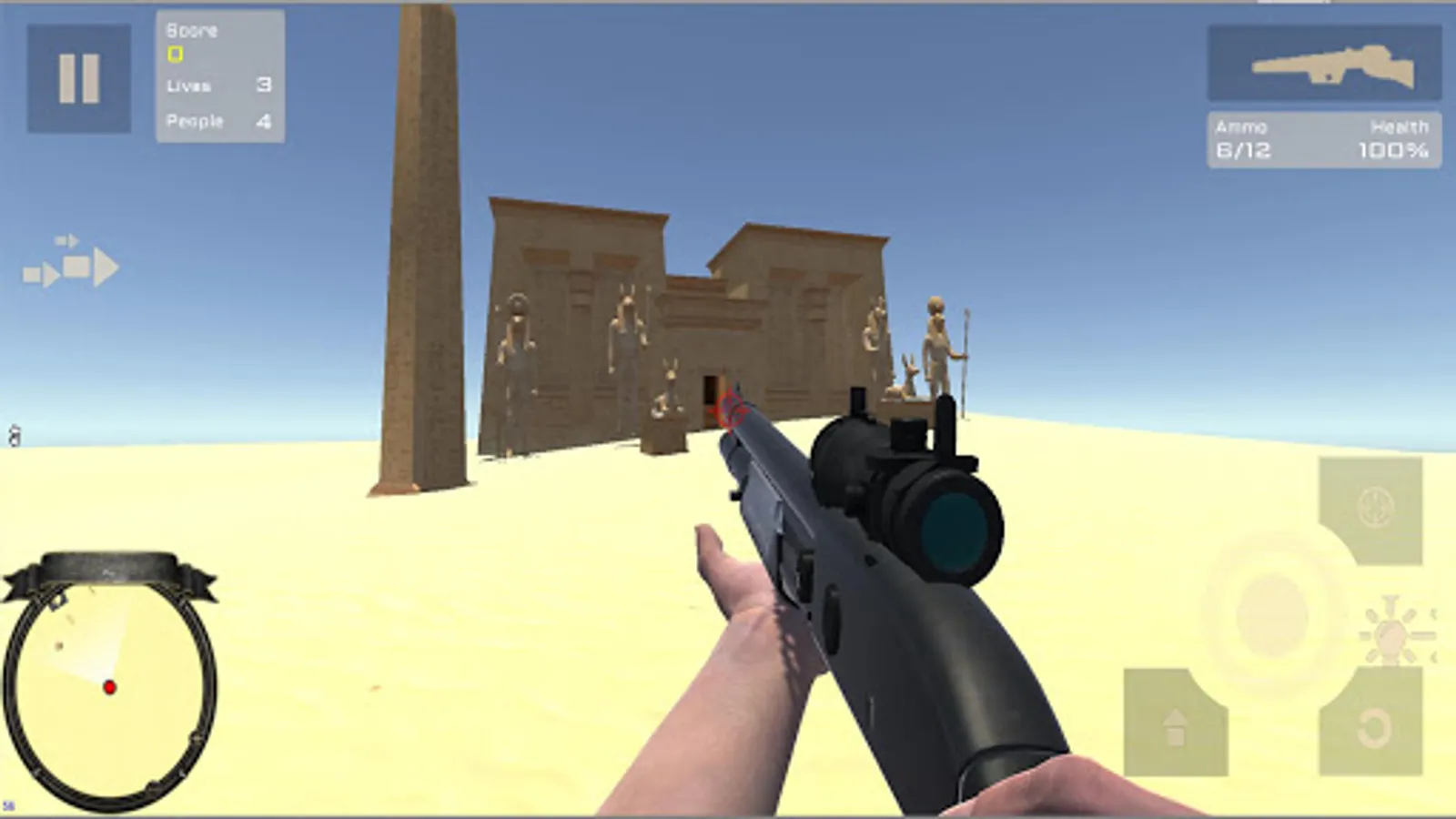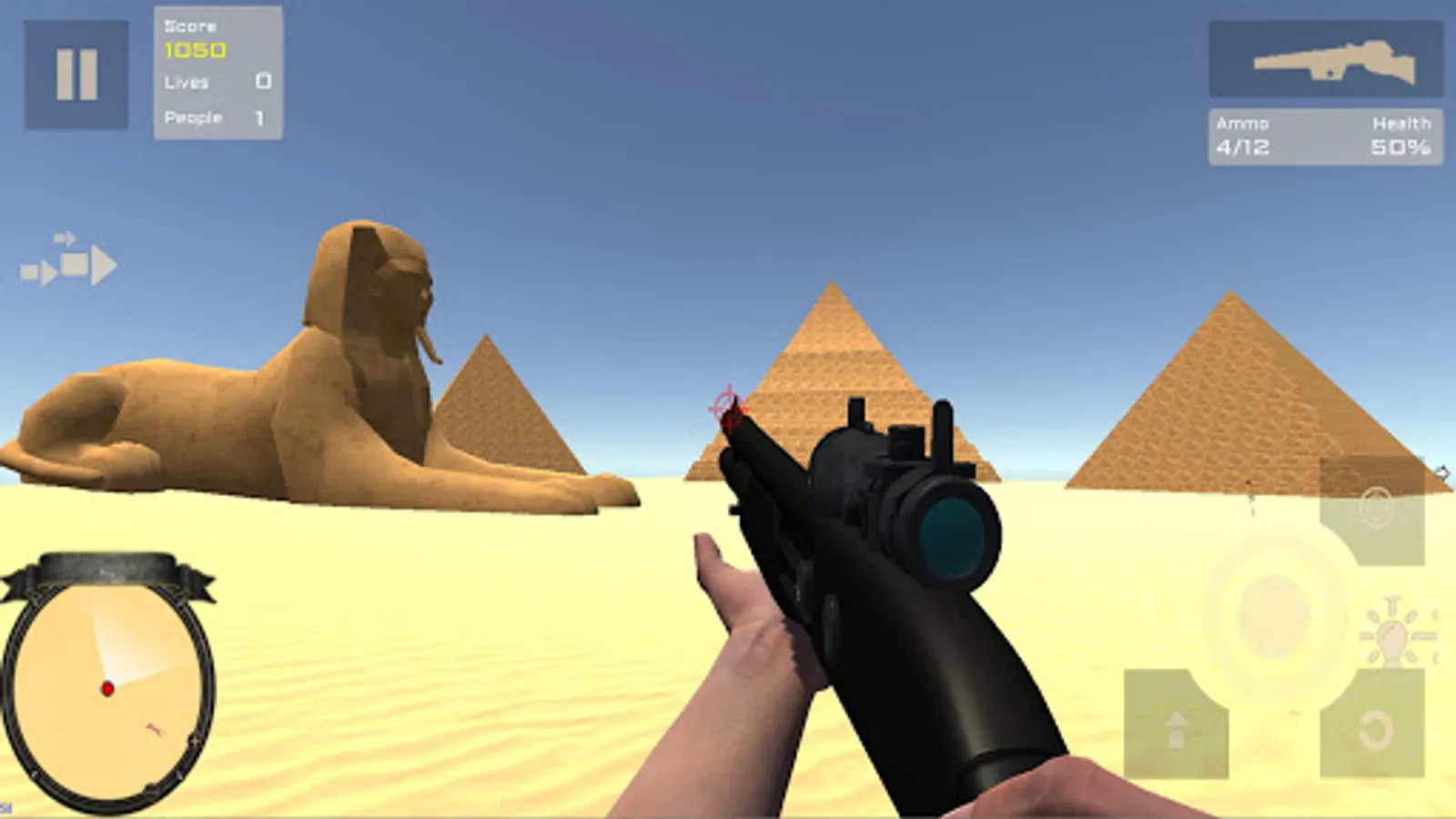 You have to keep alive people who will be attacked for dangerous desert animals (lions, crocodiles, cheetah, hyenas, camels, jackals, ...) and mummies. In an ancient Egypt scenary with pyramids, temples and sphinxes.