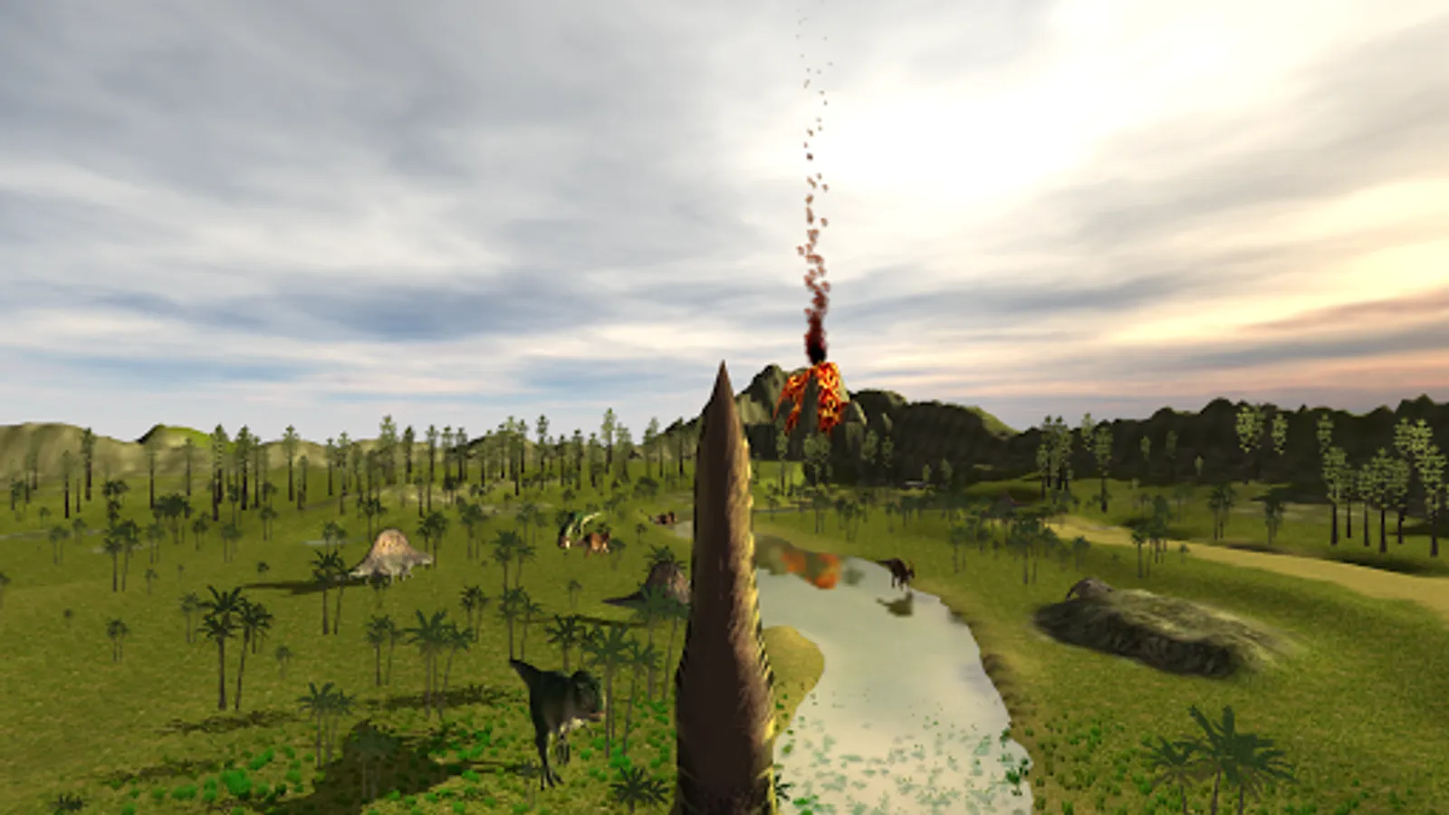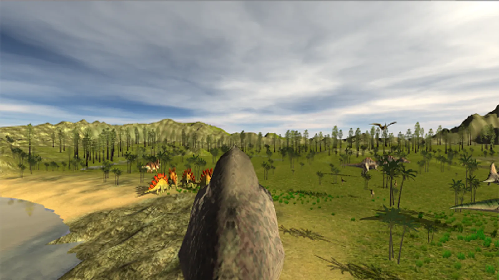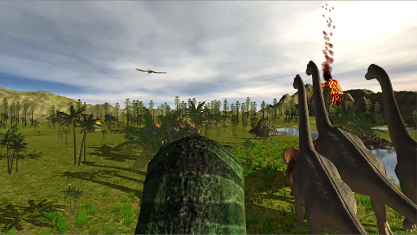 You can fly over a landscape full of dinosaurs.