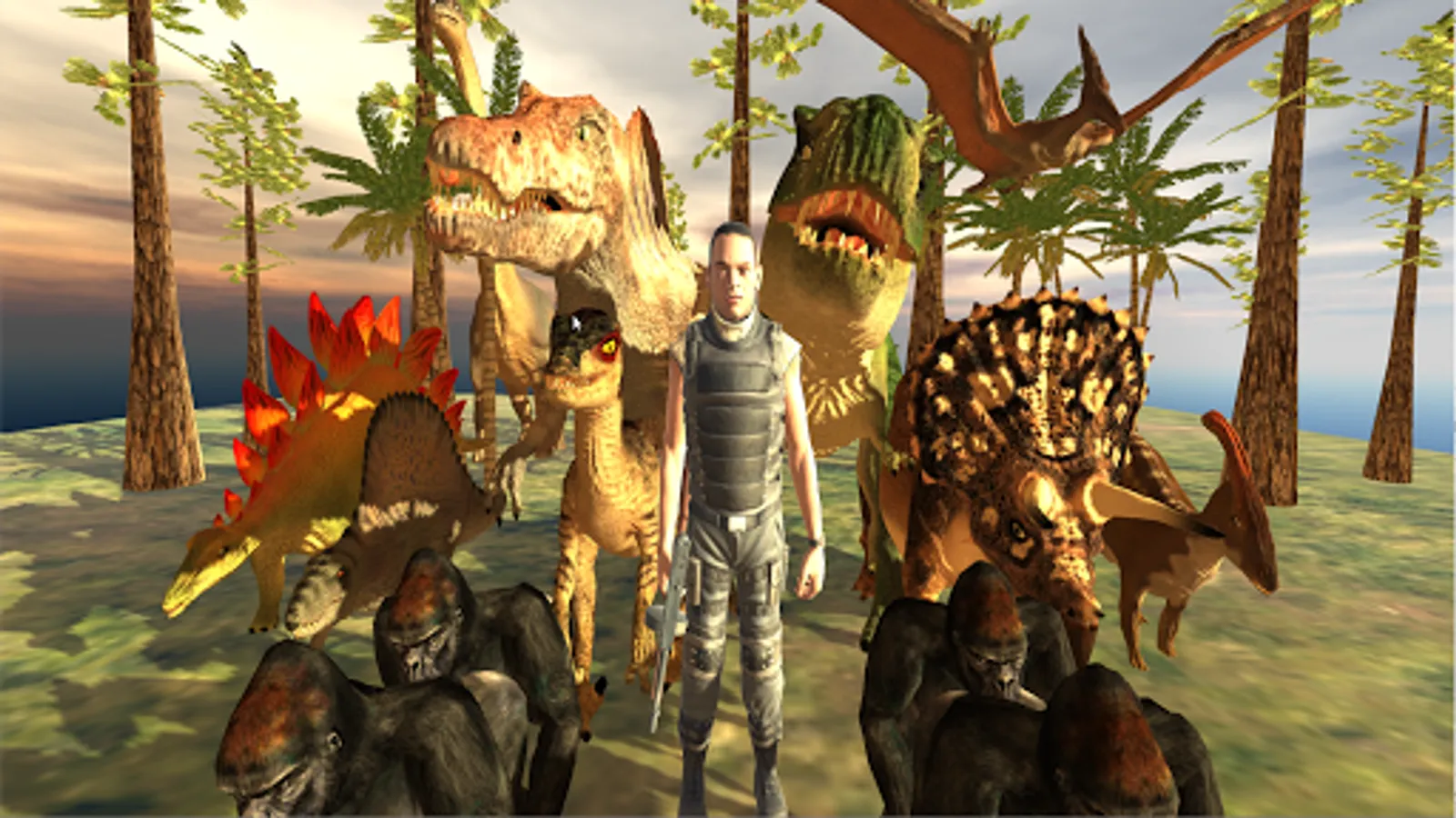 You have to keep alive primate who will be attacked for dangerous dinosaurs (T-Rex, Spinosaurus, Raptor, Triceratops, Brachiosaurus, Pteranodon, Stegosaurus, Dimetrodon, Paradophosaurus, ...).