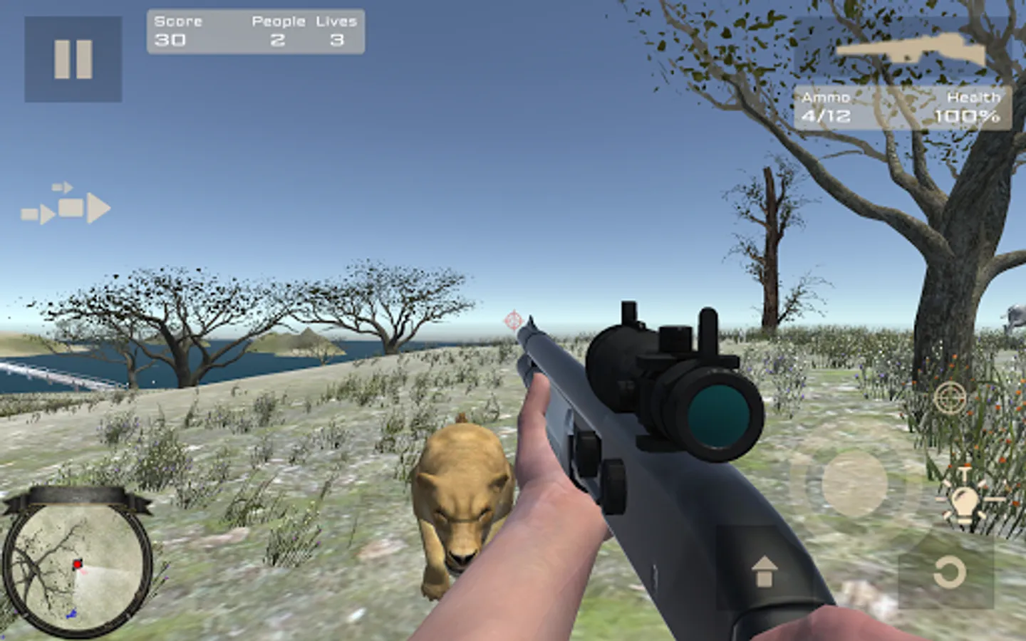 The goal of then game is protect people from animals in african safari hunting patrol from one populated to another.