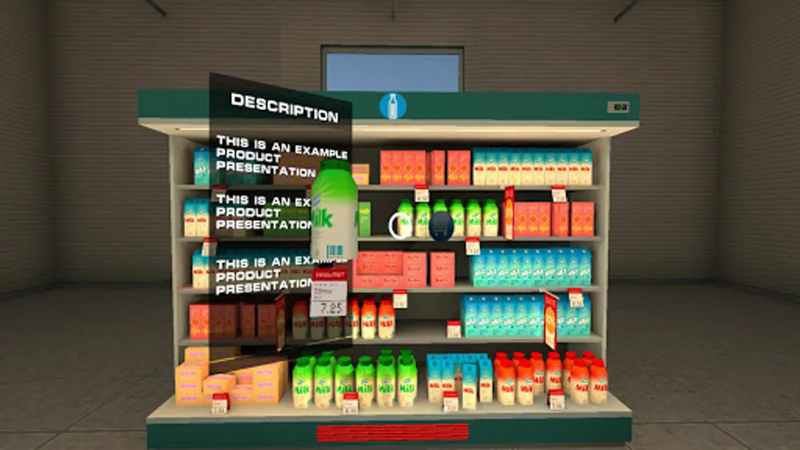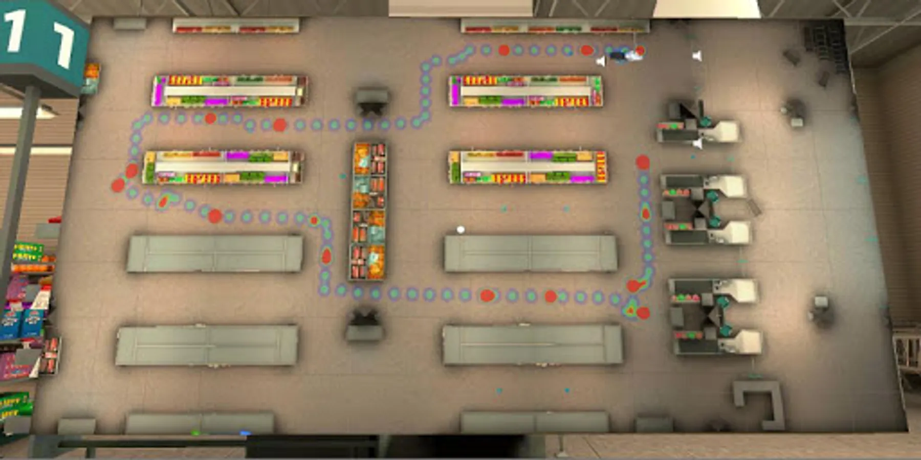 - Using the supermarket we can move freely with a GamePad or teleport us to the sections of the warehouse. At the end of the purchase we will be able to see a heat map of the route taken.