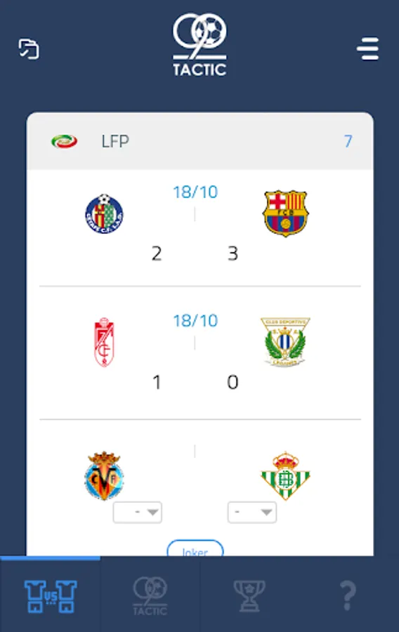 TACTIC90 is an app for predicting match results of the biggest European Football Leagues. The app allows you to share the excitement of the #1 game in the world with your friends who are passionate football fans.