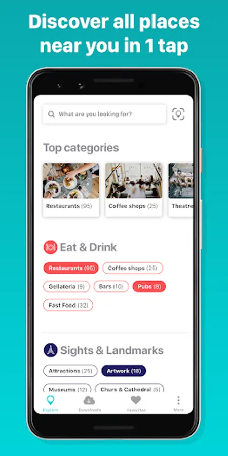 β’ Search by business name or explore by category. Easily discover all places near me from 200+ categories like best places to eat near me, coffee shops around me, nearby restaurants, fast food, ATM, banks, shops, pharmacies, museums, popular landmarks, subway, cheap fuel stations and much more.