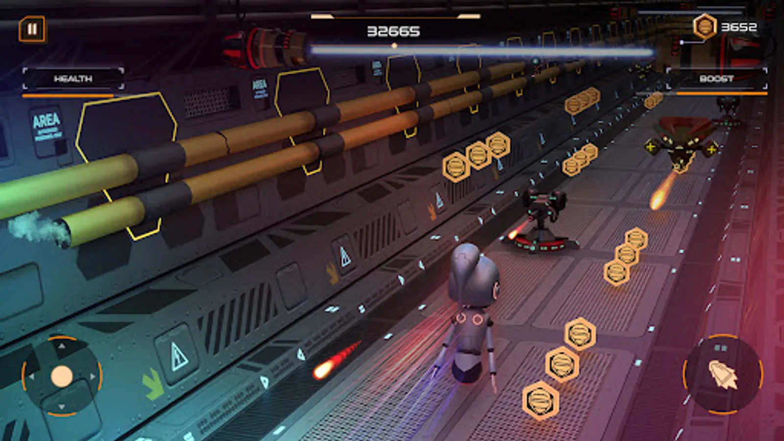 The Jetpack endless game's core mechanics revolve around running, Gliding and dodging obstacles in a fast-paced environment. As you control the jetpack alien bot, you must anticipate and react swiftly to various hurdles that obstruct your path. From laser barriers to spinning blades, the challenges you face are both diverse and demanding. The intuitive touch controls make it easy to guide the bot, ensuring a seamless and engaging gaming experience.