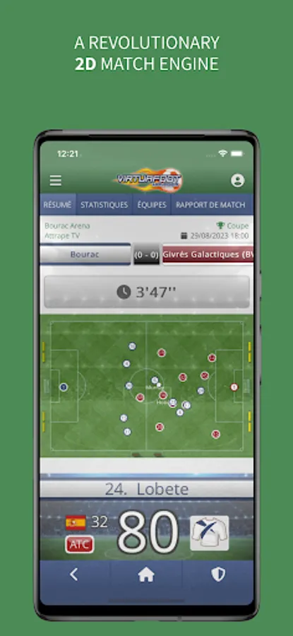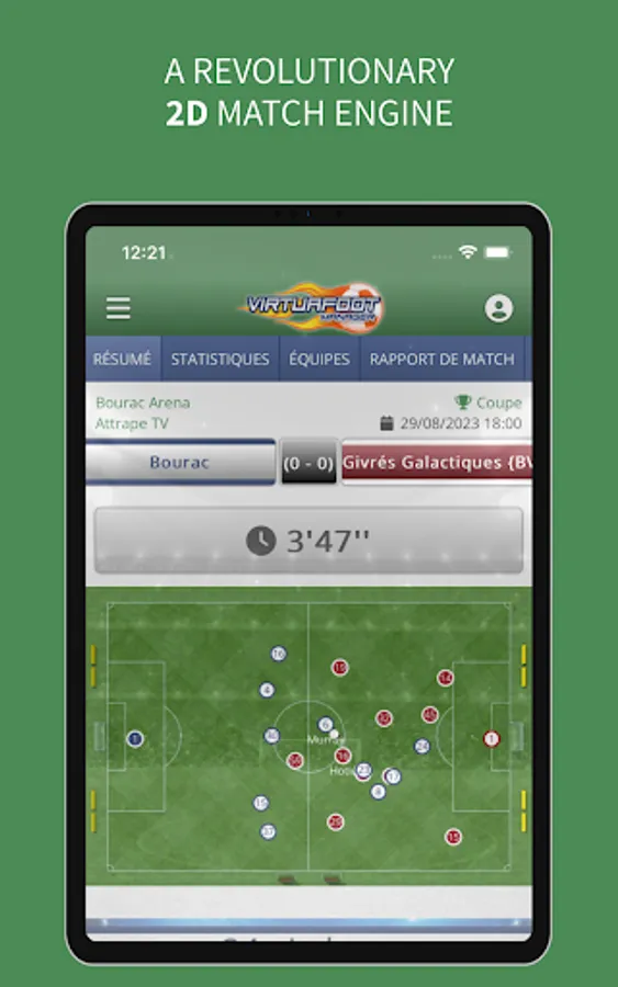 Follow the live of your matches in real time, adapt your tactics to your opponent and make substitutions.