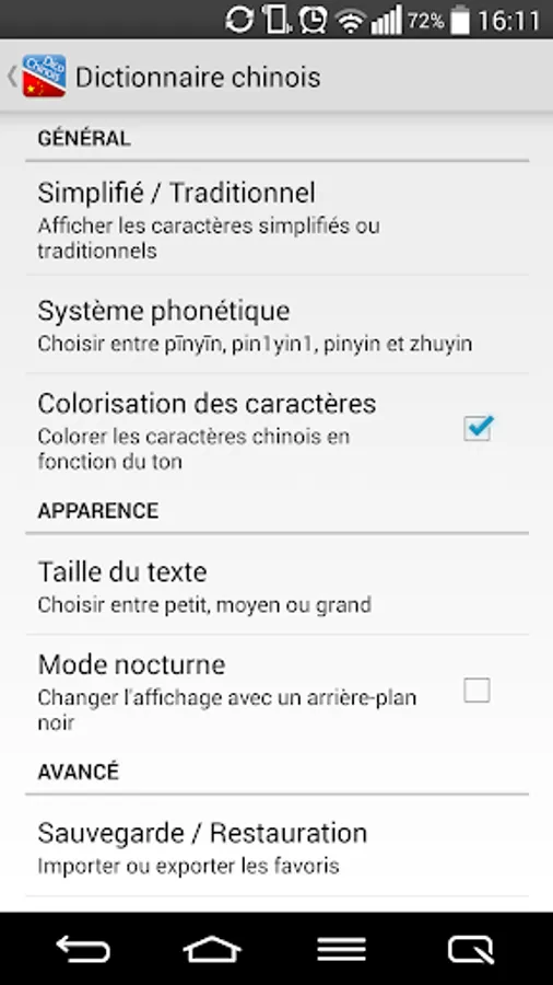 More than 170,000 entries from Chinese to French are available; to make the comparison, the best known application offers only 62,000 and does not manage as well the research in the language of Molière.
