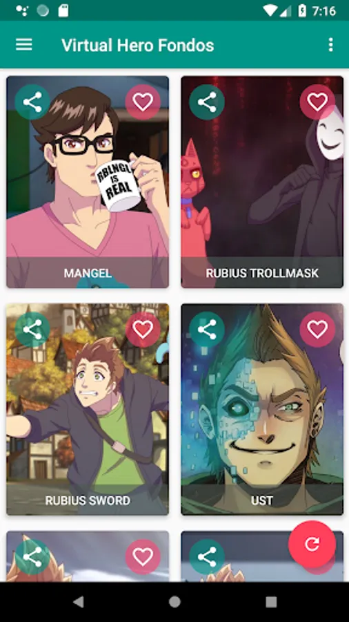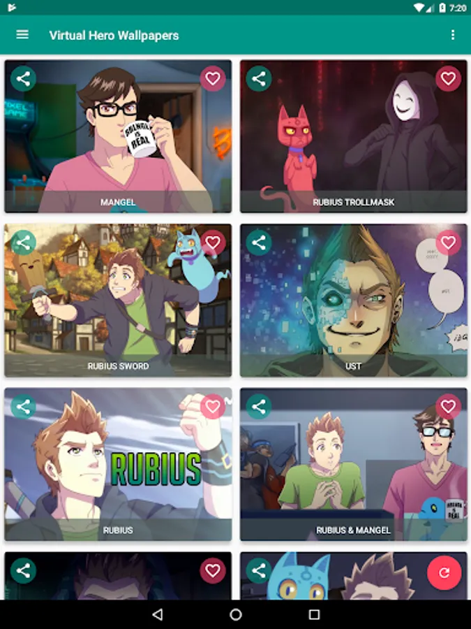 The main features of this application is that you can find wallpapers of Virtual Hero,, The Rubius, Trollmask, Zombirella, G4to and all the characters of Virtual Hero. With many screen styles, this application is designed to be easy and friendly with your battery. You can find wallpapers with a gallery of images related to Virtual Hero.
