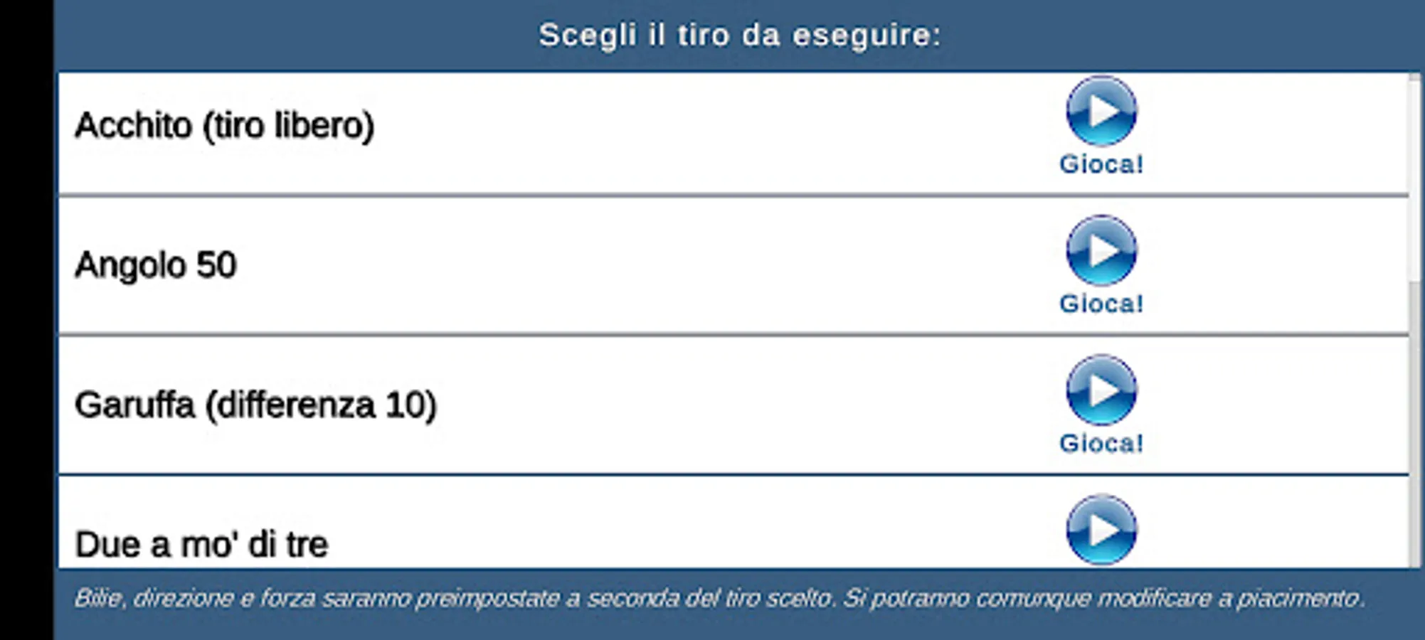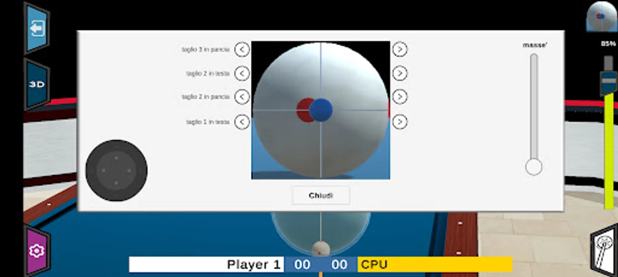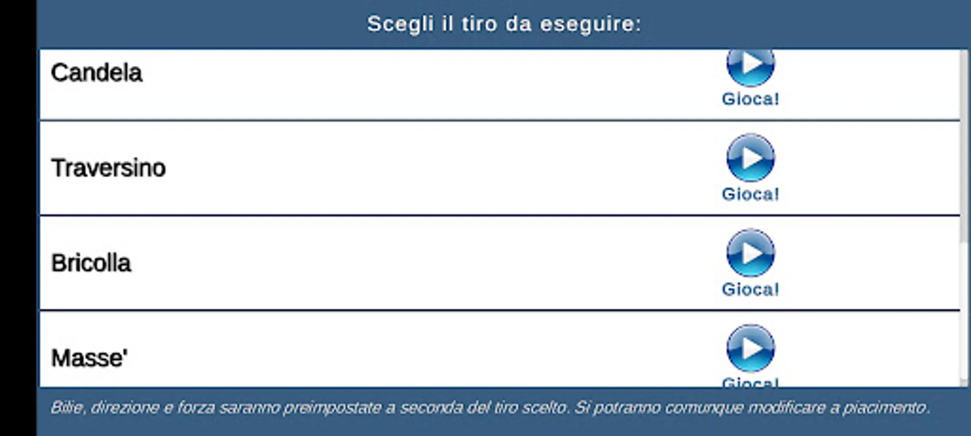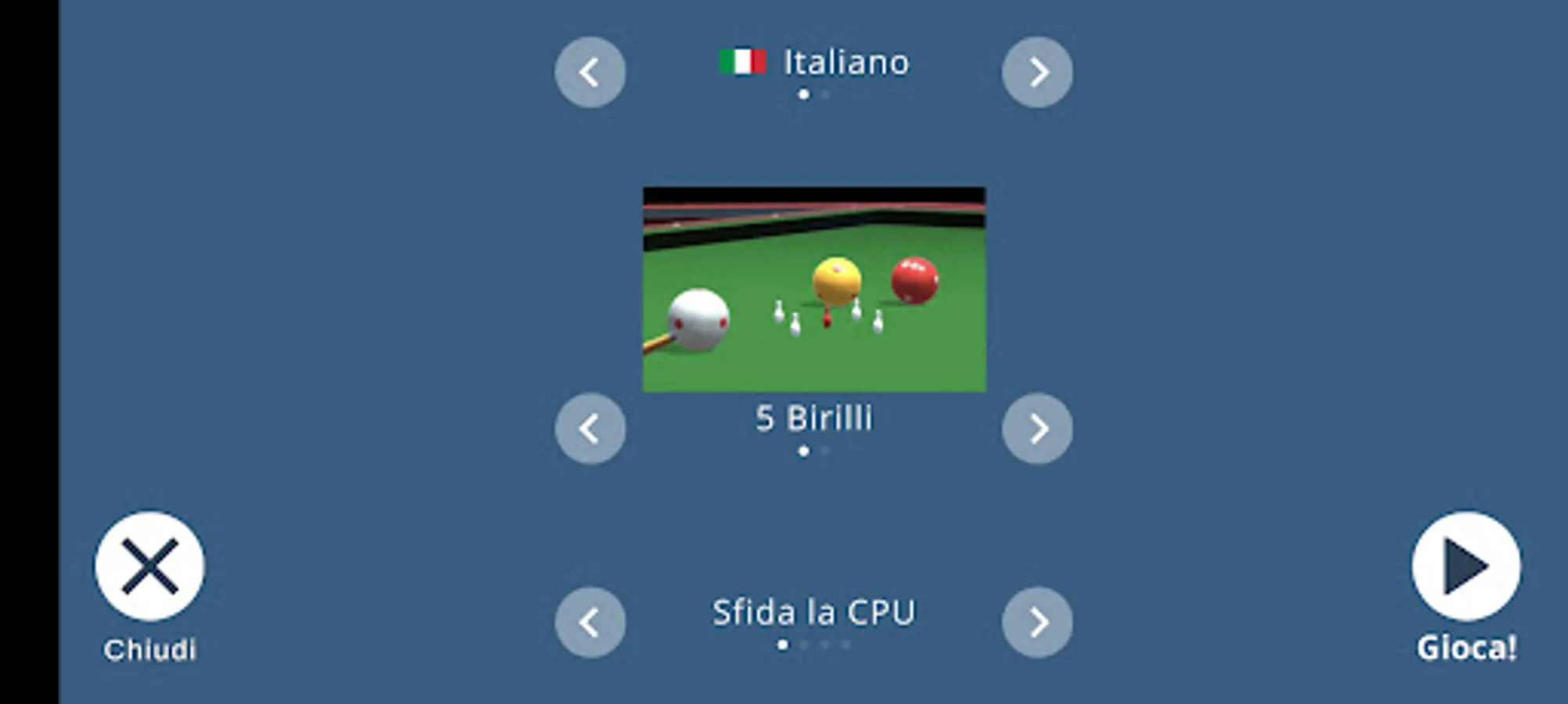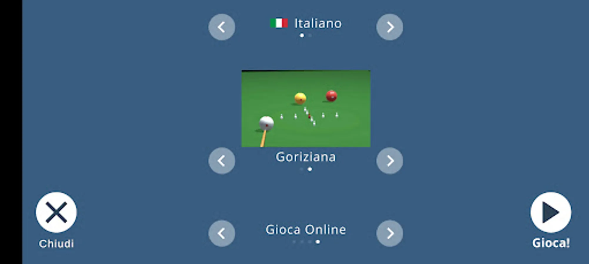 This game tries to be a simulation as close as realistic to the physics of the Italian billiard game.