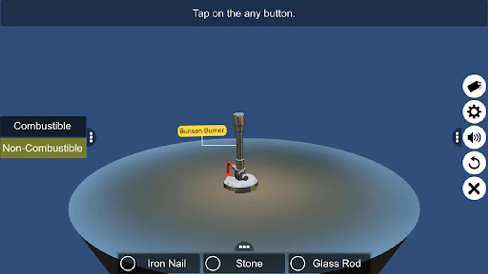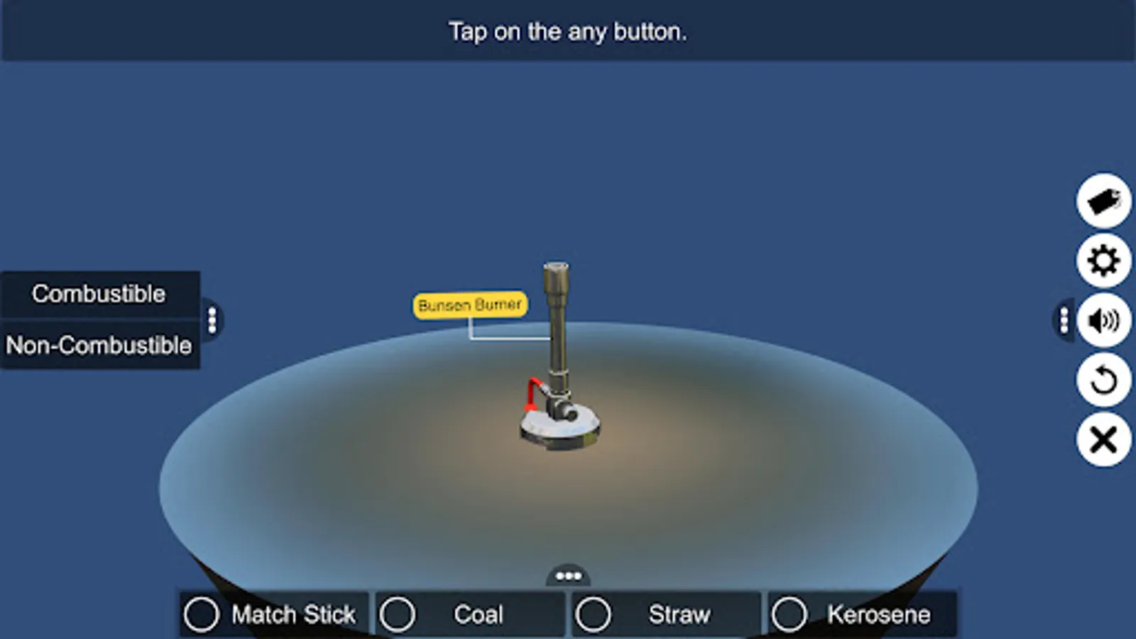 - Tap and Pinch Zoom - zoom into and identify about the combustion of different materials.