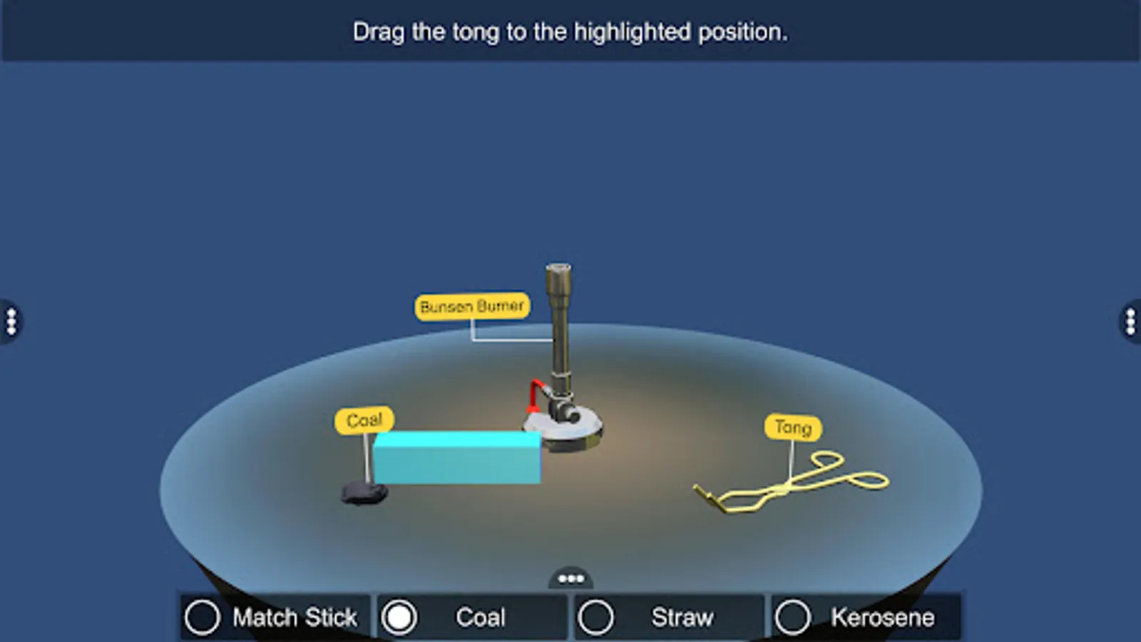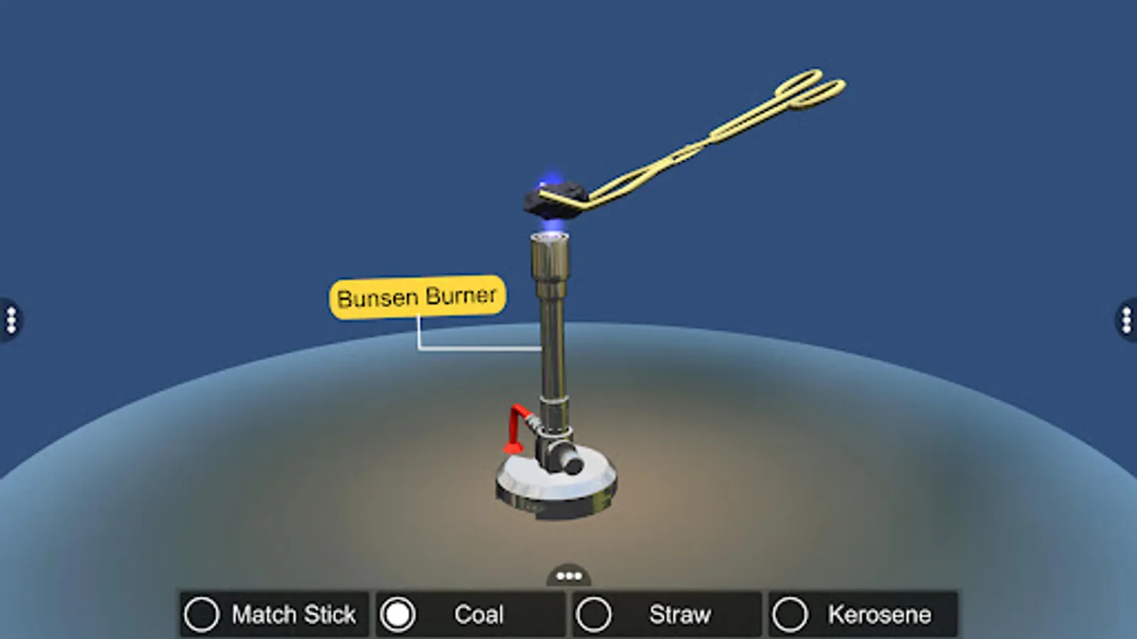 Let us explore the offerings of the “Combustion Of Different Materials” app. The user first gets acquainted with various glassware and apparatus used in the experiment. The user is then guided by the app to perform the experiment with explicit instructions. The experimental procedure is followed by interpretation of the observation and conclusion. This robust application is a great teaching and learning tool for students, educators and teachers wanting to study or teach about the combustion of different materials.