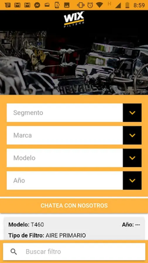 From the comfort of your phone you can now make the filters of heavy machinery, cars and motorcycles.