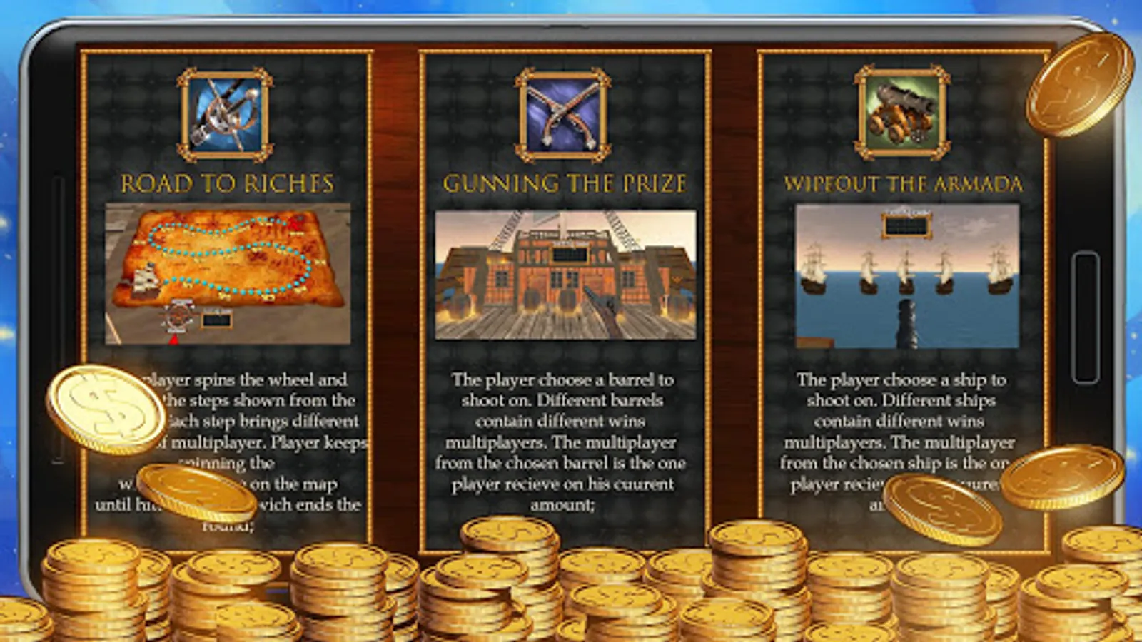 Aaaaaarhh pirates... Spin that wheel and see what prizes are in store for you and download this free VR slot machine now.