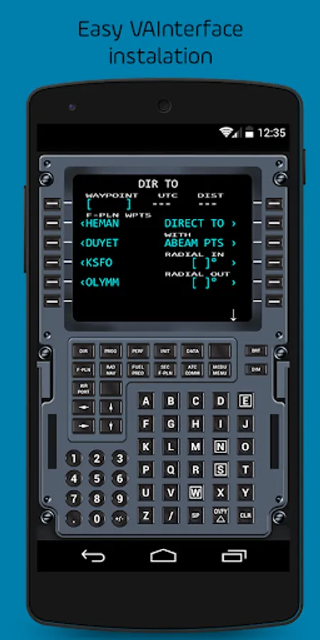 It will act as a CDU and will allow you to interact with the FMC on your Flight Simulator. It interfaces with your FS using an application installed on PC, called VAInterface, through wi-fi network. All data related to FMC is displayed on Virtual CDU and touch keyboard inputs are directly sent to FS.