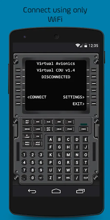 ATTENTION: This is NOT a standalone application! It will act as a CDU and allows you to interact with the FMC on your Flight Simulator. It interfaces with your FS using an application installed on PC through a TCP/IP network. All data related to FMC is displayed on the Virtual CDU and touch keyboard inputs are directly sent to FS.