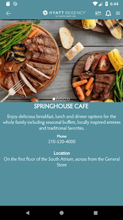 The Hyatt Regency Hill Country Resort universal concierge mobile app includes: